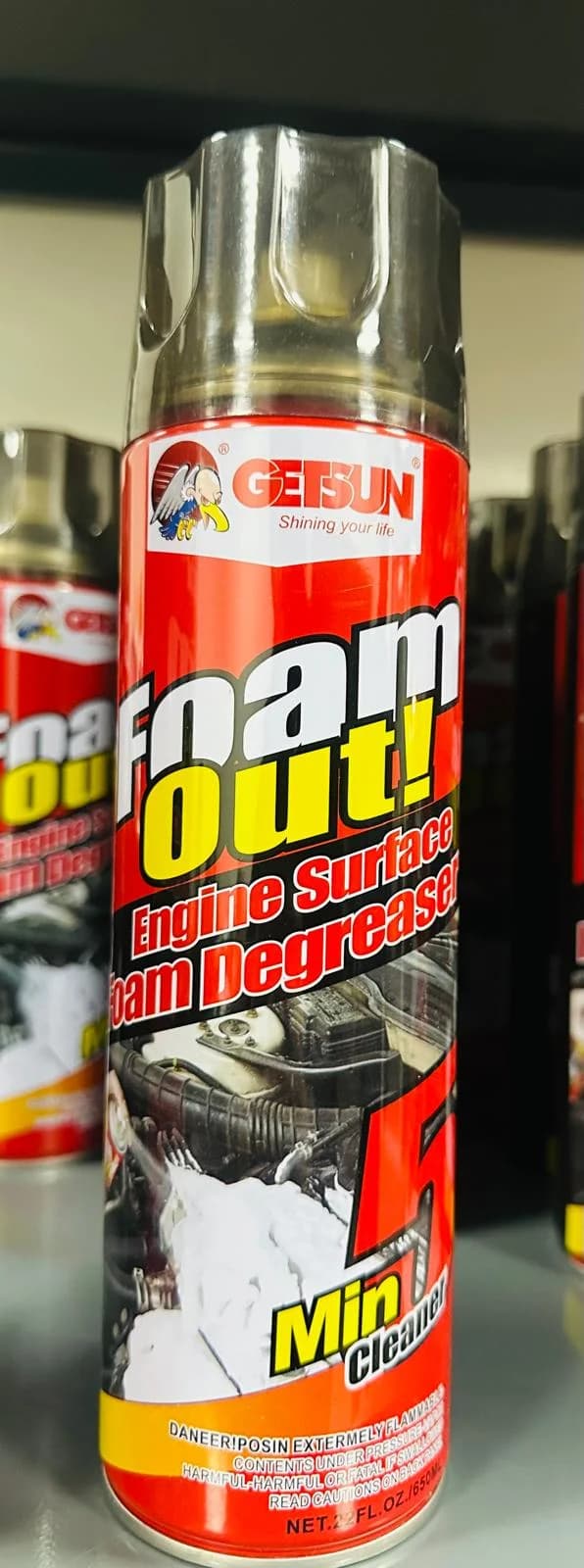 Foam Out منظّف قوي لمقصورة المحرك. رش، اترك الرغوة، اشطف — يرفع الشحوم والأوساخ دون الإضرار بالمكونات.