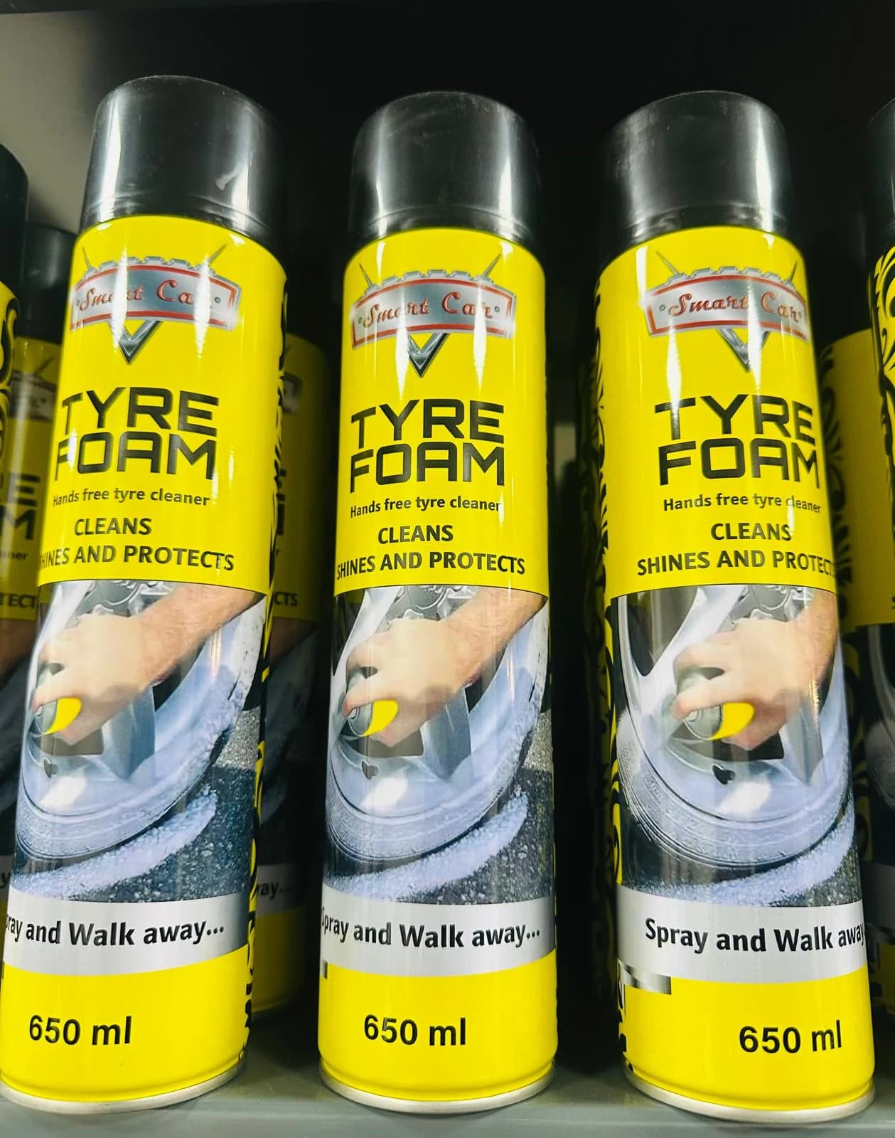 Smart Car Tyre Foam — رُش واتركه. يُنظّف، يُلمّع، يحمي في خطوة واحدة. علبة 650 مل.